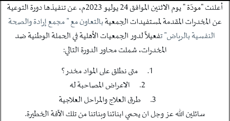 دورة التوعية عن المخدرات